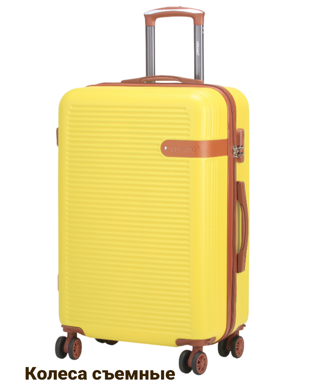 - — 4 съёмных полиуретановых колеса на скользящих подшипниках облитые резиной создают бесшумное скольжение и вращаются на 360 градусов.- Тип кодового замка: Встроенный кодовый замок.- Выдвижная металлическая ручка фиксируется в нескольких положениях по высоте.- Верхняя и боковая ручки для ношения чемодана, также боковые ножки и встроенный кодовый замок.- Чемодан имеет одно основное отделение которое разделено на две части и закрывается на молнию.- Одно отделение имеет тканевую перегородку которая закрывается на молнию.- Второе отделение имеет ремни для крепления багажа.- Маленькие чемоданы подходят для ручной клади, при желании колеса можно снять.- Путешествуйте комфортно вместе с Verano!!!
