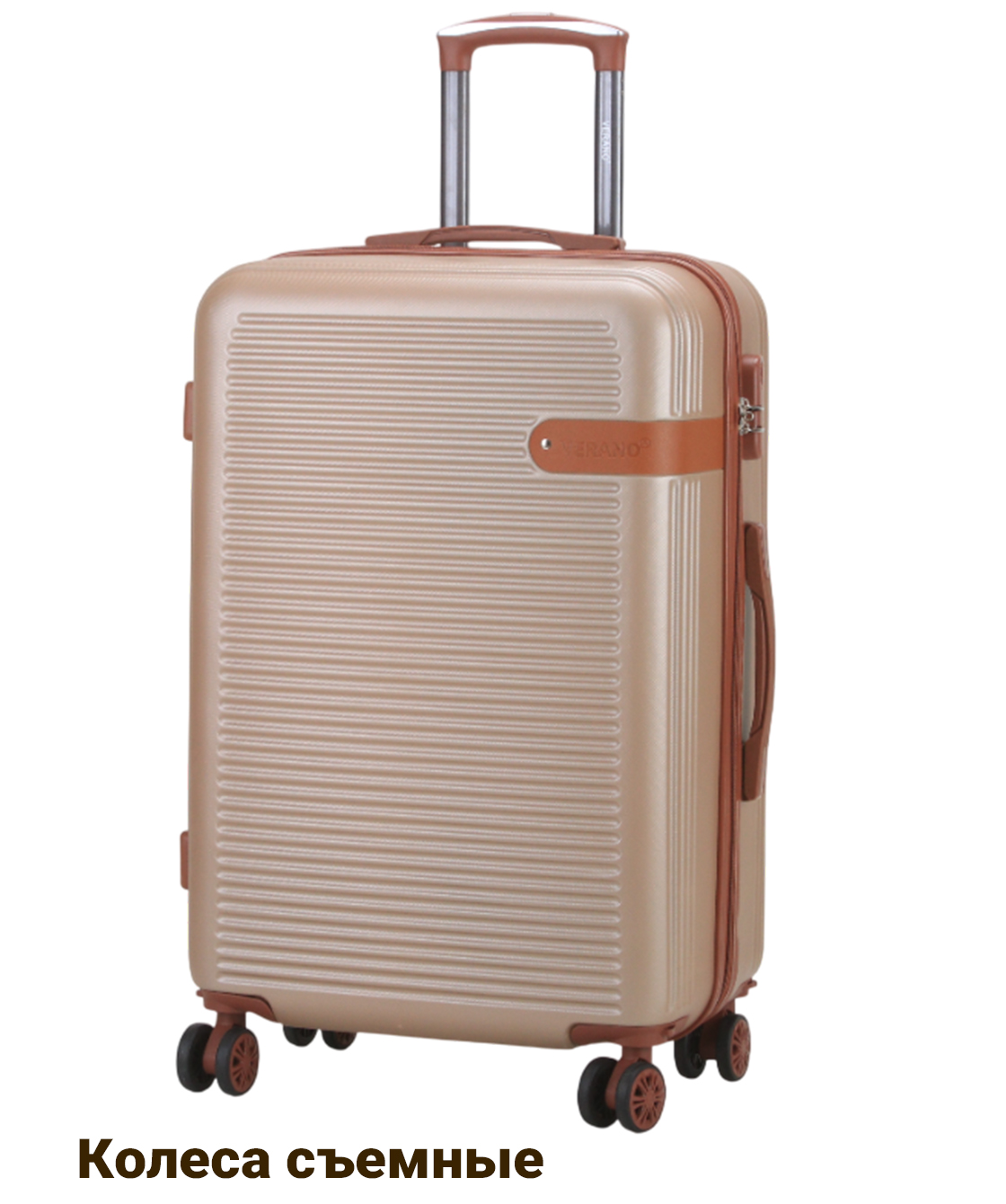 - — 4 съёмных полиуретановых колеса на скользящих подшипниках облитые резиной создают бесшумное скольжение и вращаются на 360 градусов.- Тип кодового замка: Встроенный кодовый замок.- Выдвижная металлическая ручка фиксируется в нескольких положениях по высоте.- Верхняя и боковая ручки для ношения чемодана, также боковые ножки и встроенный кодовый замок.- Чемодан имеет одно основное отделение которое разделено на две части и закрывается на молнию.- Одно отделение имеет тканевую перегородку которая закрывается на молнию.- Второе отделение имеет ремни для крепления багажа.- Маленькие чемоданы подходят для ручной клади, при желании колеса можно снять.- Путешествуйте комфортно вместе с Verano!!!