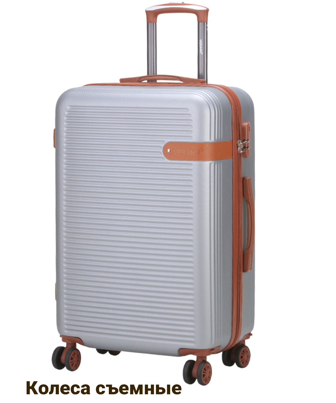- — 4 съёмных полиуретановых колеса на скользящих подшипниках облитые резиной создают бесшумное скольжение и вращаются на 360 градусов.- Тип кодового замка: Встроенный кодовый замок.- Выдвижная металлическая ручка фиксируется в нескольких положениях по высоте.- Верхняя и боковая ручки для ношения чемодана, также боковые ножки и встроенный кодовый замок.- Чемодан имеет одно основное отделение которое разделено на две части и закрывается на молнию.- Одно отделение имеет тканевую перегородку которая закрывается на молнию.- Второе отделение имеет ремни для крепления багажа.- Маленькие чемоданы подходят для ручной клади, при желании колеса можно снять.- Путешествуйте комфортно вместе с Verano!!!