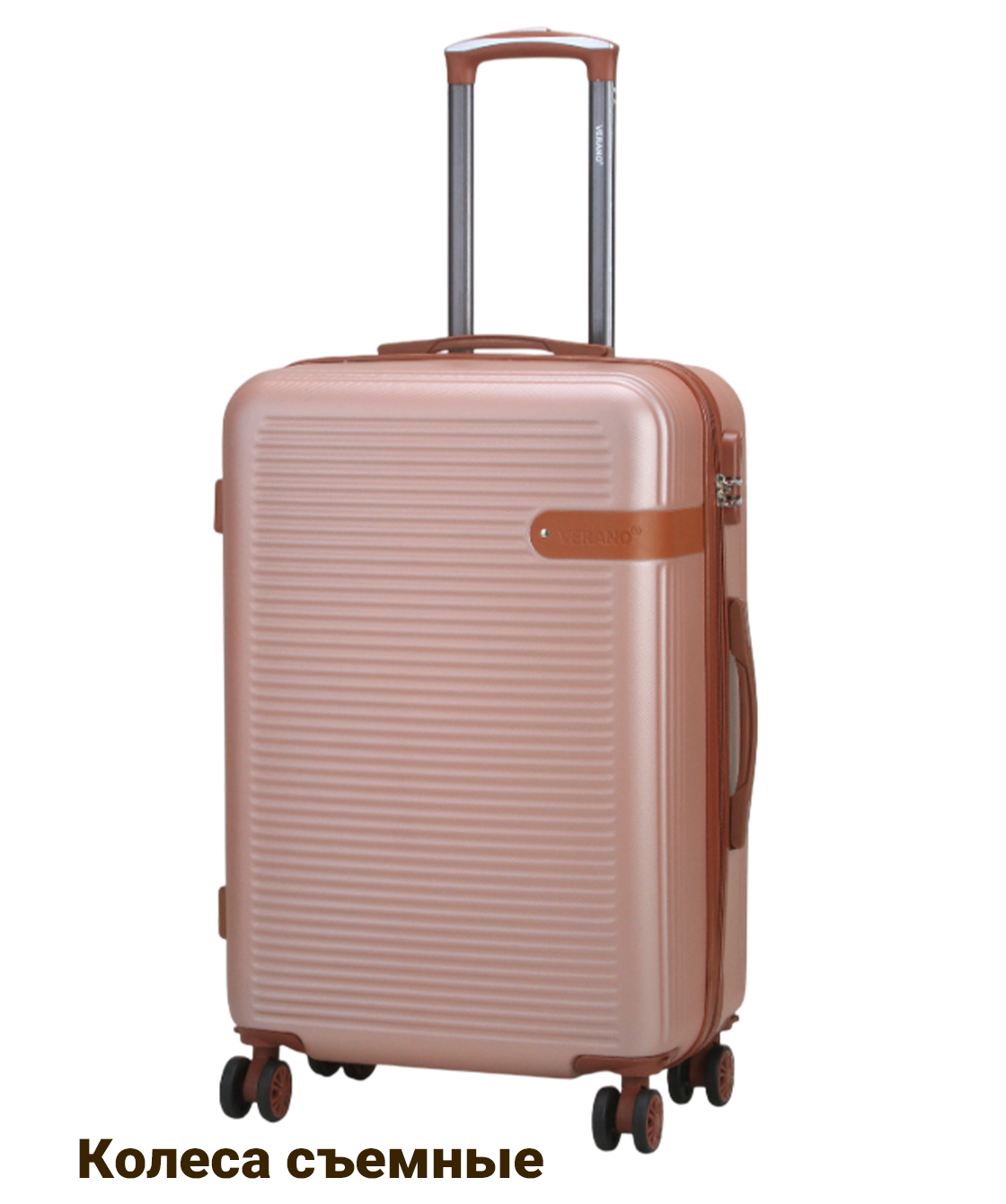 - — 4 съёмных полиуретановых колеса на скользящих подшипниках облитые резиной создают бесшумное скольжение и вращаются на 360 градусов.- Тип кодового замка: Встроенный кодовый замок.- Выдвижная металлическая ручка фиксируется в нескольких положениях по высоте.- Верхняя и боковая ручки для ношения чемодана, также боковые ножки и встроенный кодовый замок.- Чемодан имеет одно основное отделение которое разделено на две части и закрывается на молнию.- Одно отделение имеет тканевую перегородку которая закрывается на молнию.- Второе отделение имеет ремни для крепления багажа.- Маленькие чемоданы подходят для ручной клади, при желании колеса можно снять.- Путешествуйте комфортно вместе с Verano!!!