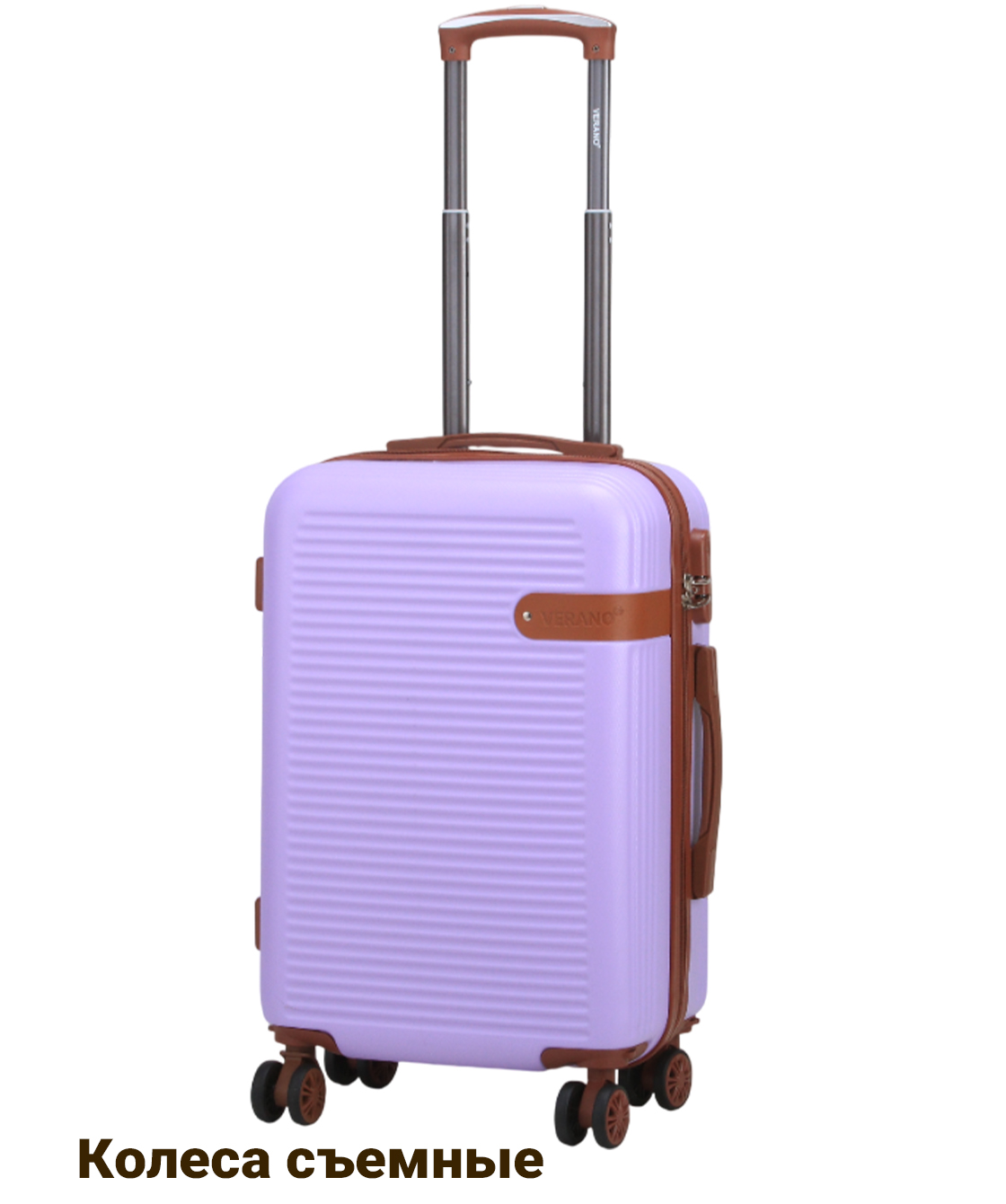 - — 4 съёмных полиуретановых колеса на скользящих подшипниках облитые резиной создают бесшумное скольжение и вращаются на 360 градусов.- Тип кодового замка: Встроенный кодовый замок.- Выдвижная металлическая ручка фиксируется в нескольких положениях по высоте.- Верхняя и боковая ручки для ношения чемодана, также боковые ножки и встроенный кодовый замок.- Чемодан имеет одно основное отделение которое разделено на две части и закрывается на молнию.- Одно отделение имеет тканевую перегородку которая закрывается на молнию.- Второе отделение имеет ремни для крепления багажа.- Маленькие чемоданы подходят для ручной клади, при желании колеса можно снять.- Путешествуйте комфортно вместе с Verano!!!