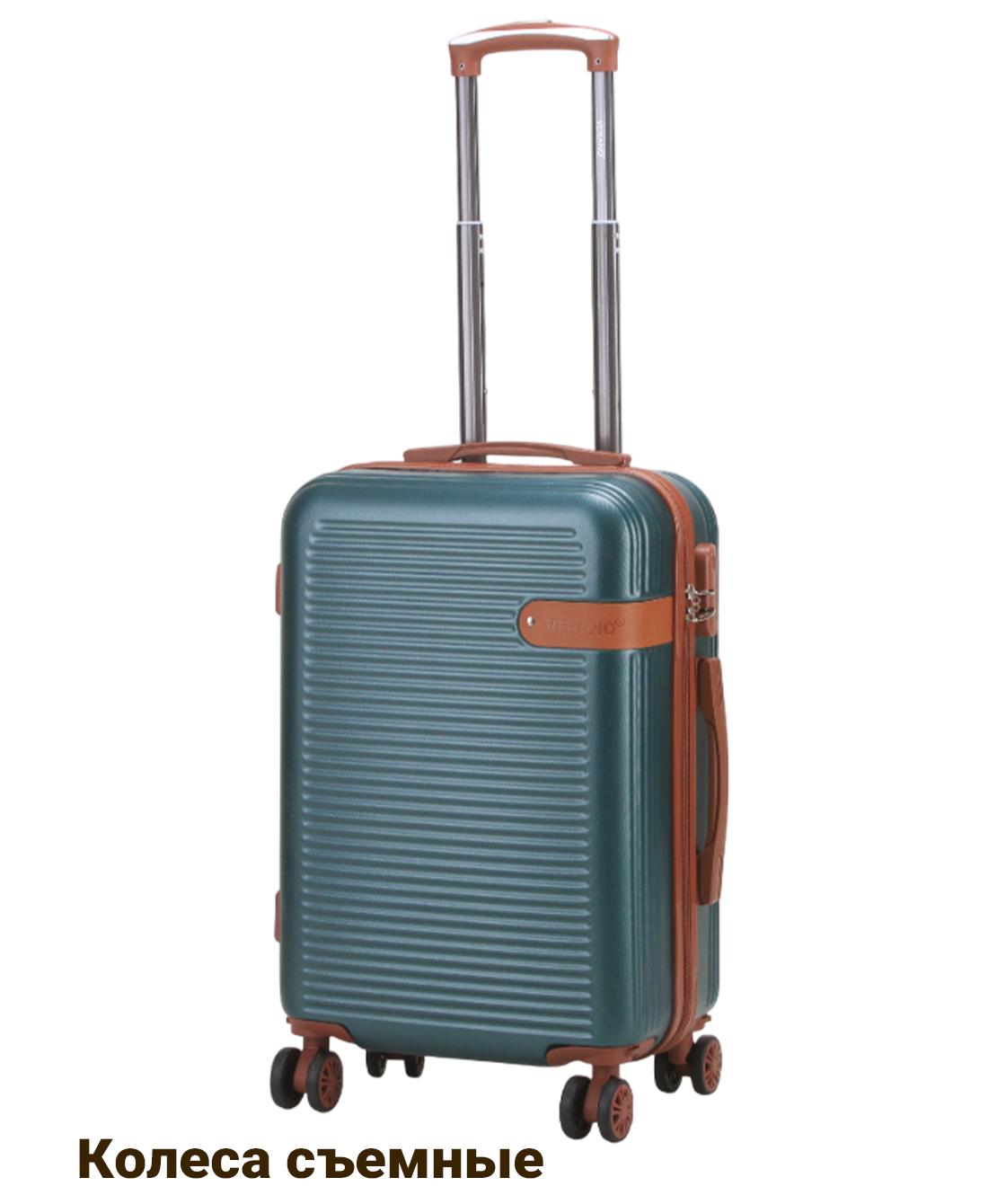 - — 4 съёмных полиуретановых колеса на скользящих подшипниках облитые резиной создают бесшумное скольжение и вращаются на 360 градусов.- Тип кодового замка: Встроенный кодовый замок.- Выдвижная металлическая ручка фиксируется в нескольких положениях по высоте.- Верхняя и боковая ручки для ношения чемодана, также боковые ножки и встроенный кодовый замок.- Чемодан имеет одно основное отделение которое разделено на две части и закрывается на молнию.- Одно отделение имеет тканевую перегородку которая закрывается на молнию.- Второе отделение имеет ремни для крепления багажа.- Маленькие чемоданы подходят для ручной клади, при желании колеса можно снять.- Путешествуйте комфортно вместе с Verano!!!