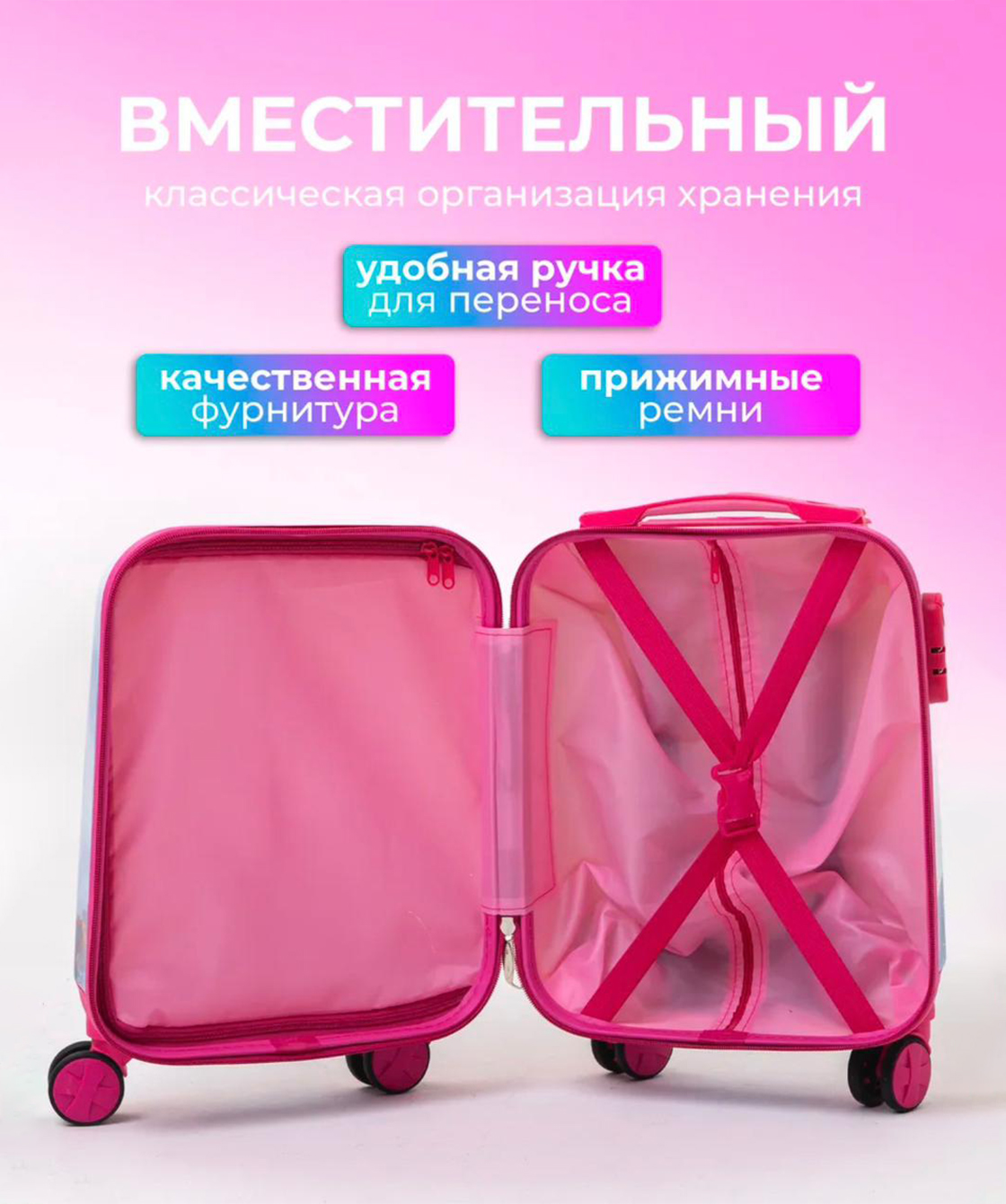 — Детский чемодан изготовлен из прочного материала поликарбонат.