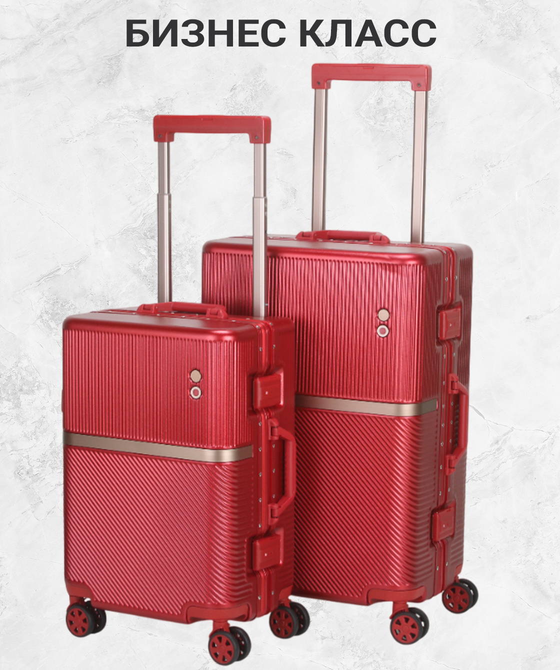 — Чемодан бизнес класса, изготовлен из высокопрочного материала поликарбонат с металлическим каркасом.