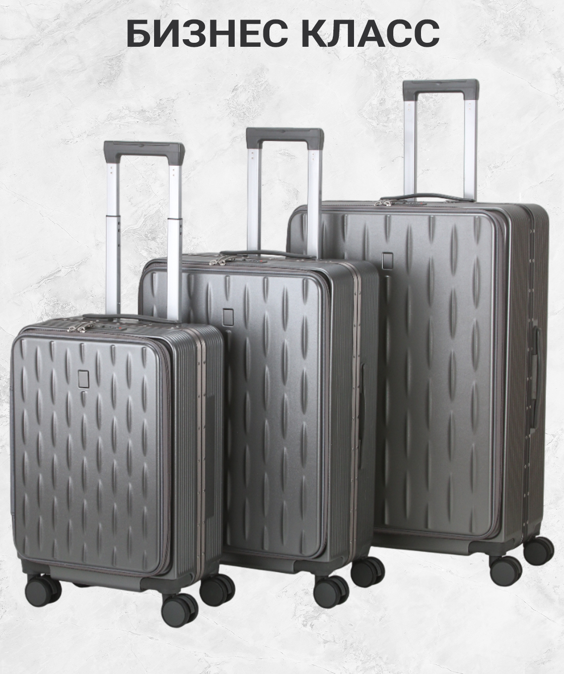 — Чемодан бизнес класса, изготовлен из высокопрочного материала поликарбонат с металлическим каркасом.
