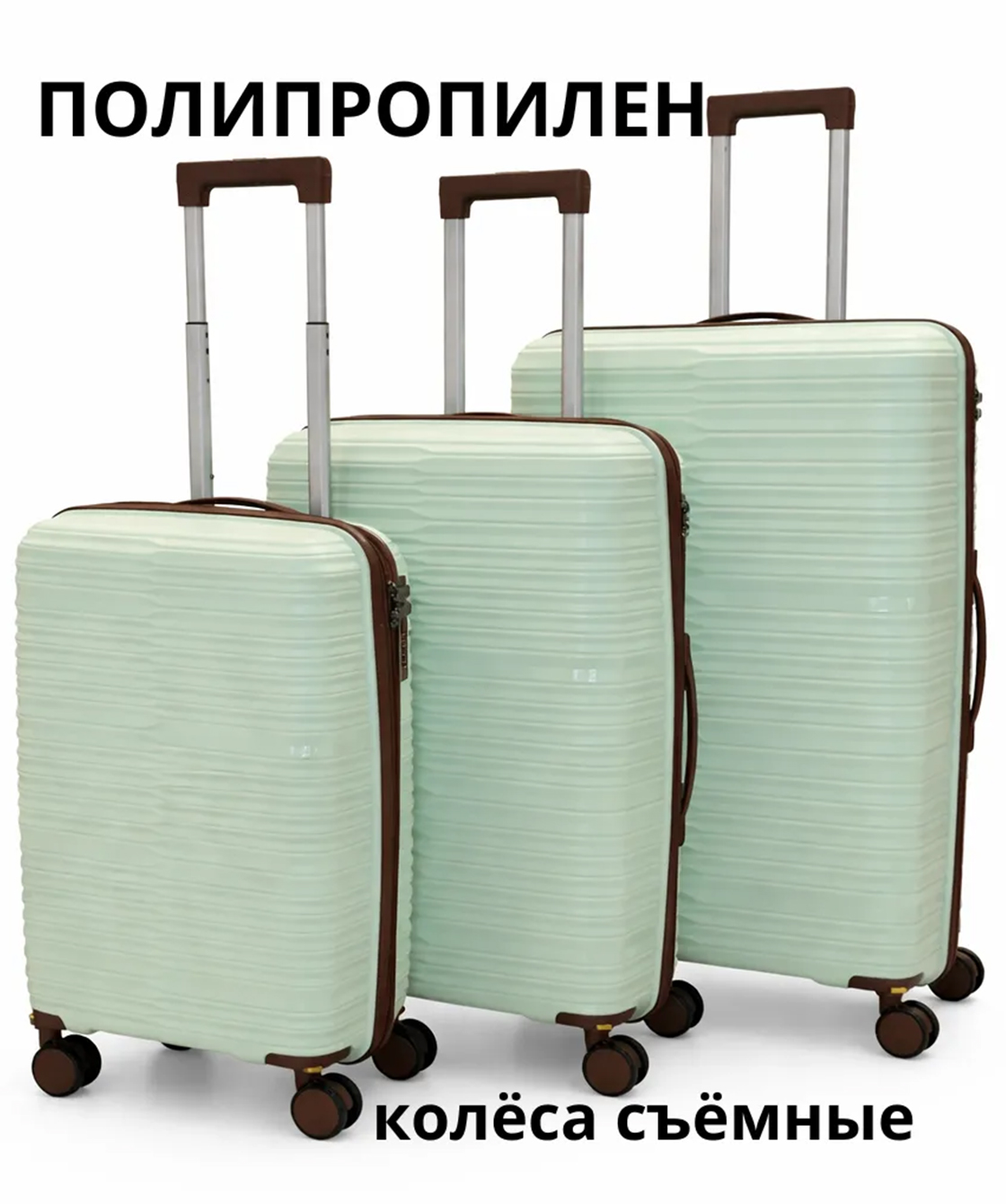 — На среднем и большом чемоданах есть боковые ручки для ношения и боковые ножки, на которые чемодан можно поставить.