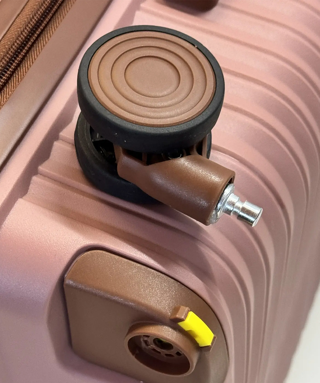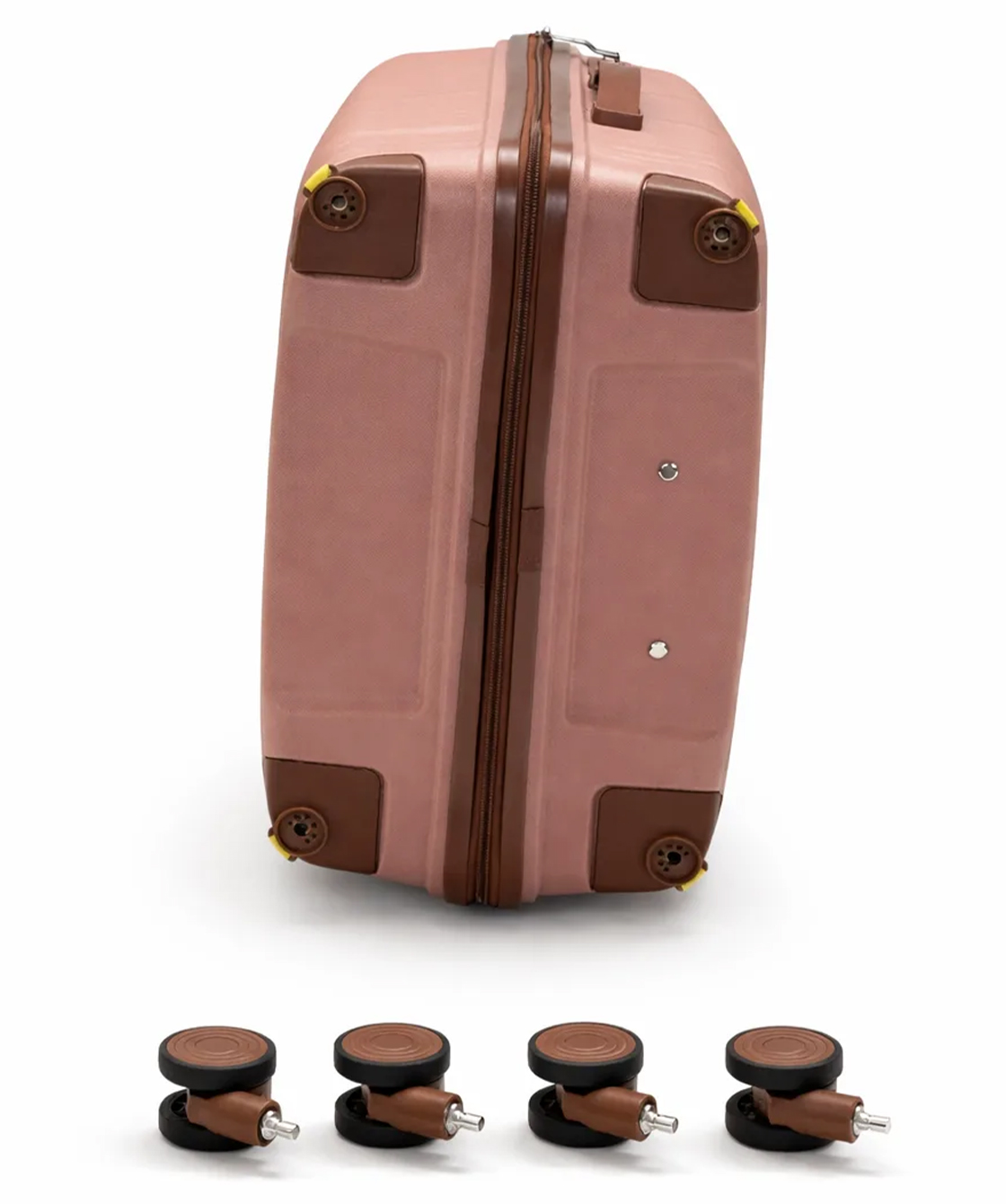 — Чемодан оснащён 4-мя спаренными колёсами на скользящих подшипниках, которые вращаются на 360 градусов.