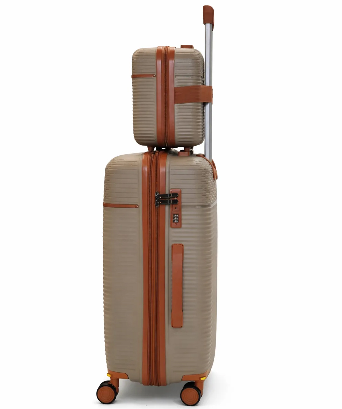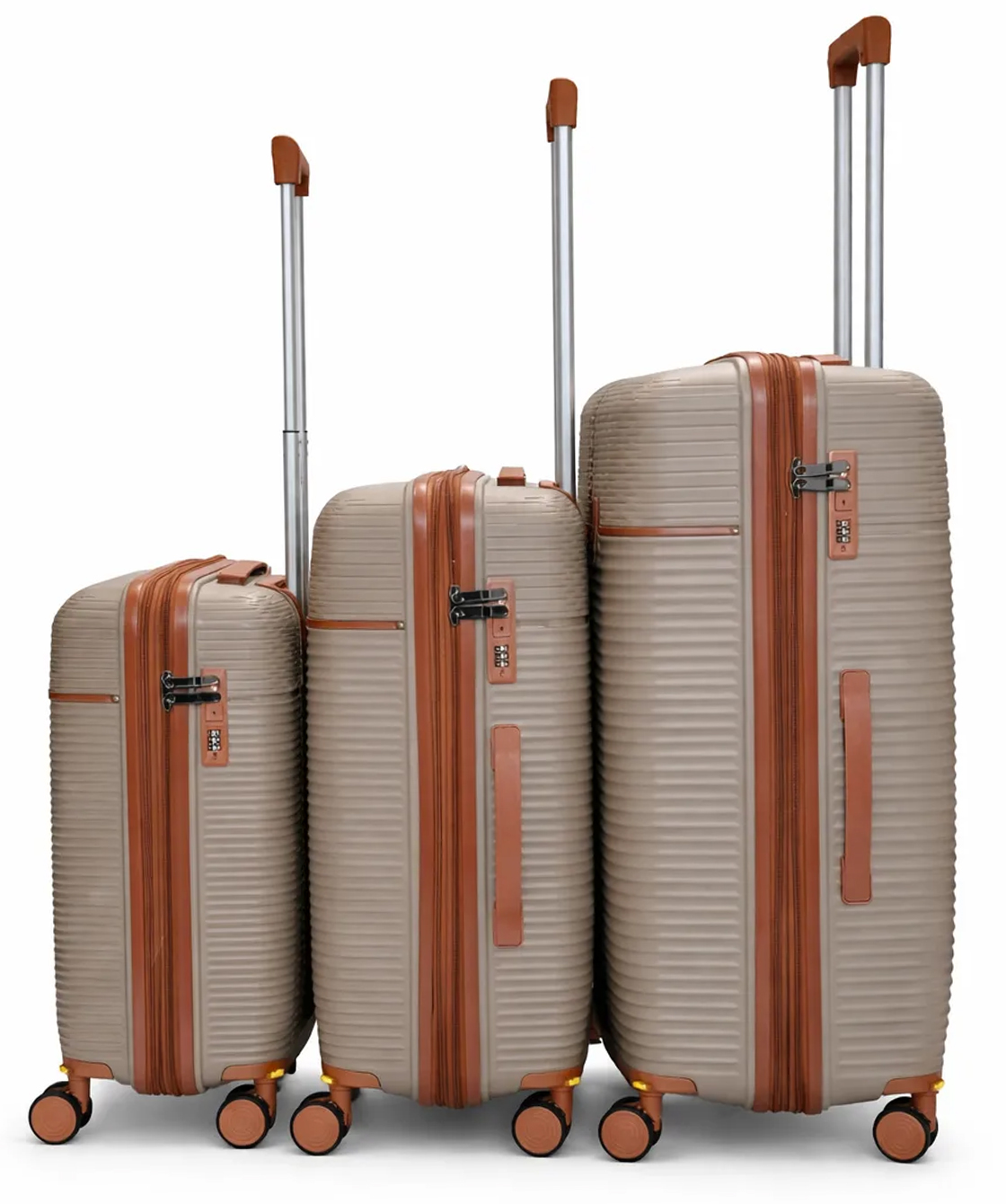 — На среднем и большом чемоданах есть боковые ручки для ношения и боковые ножки, на которые чемодан можно поставить.