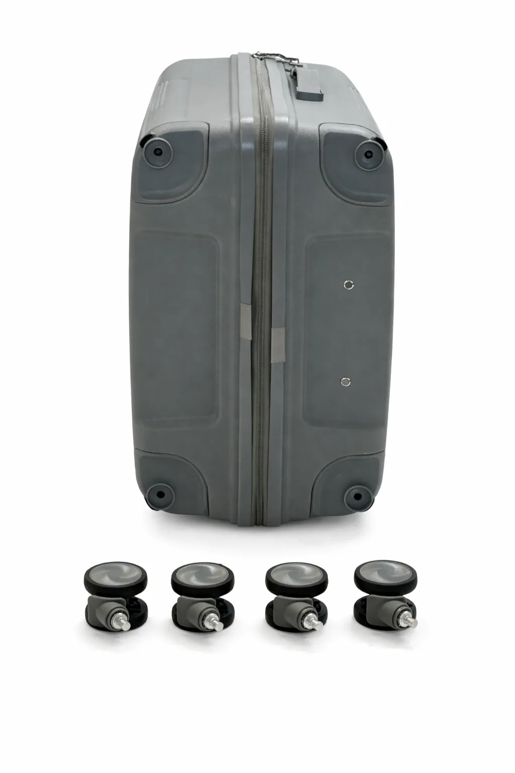 — Чемодан оснащён 4-мя полиуретановыми колесами на скользящих подшипниках, которые вращаются на 360 градусов.