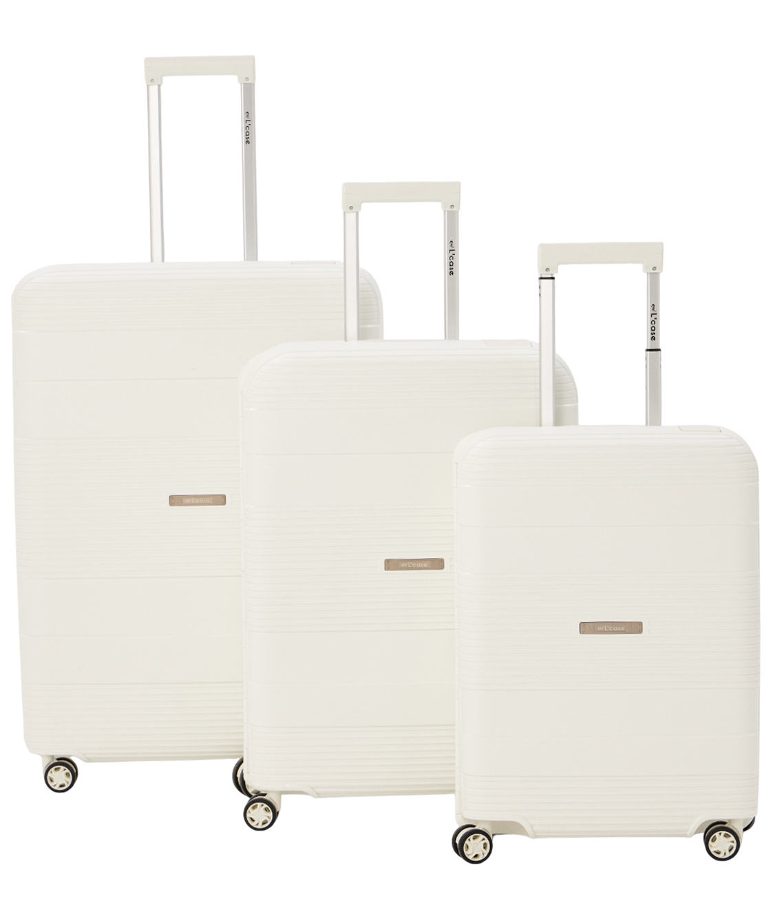 - — Чемодан выполнен из прочного полипропилена, который отличается легкостью и устойчивостью к механическим повреждениям.
