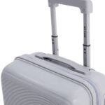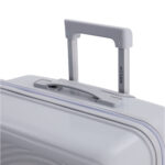 - — Выдвижная металлическая ручка имеет несколько уровней регулировки по высоте, что позволяет комфортно перемещать чемодан.