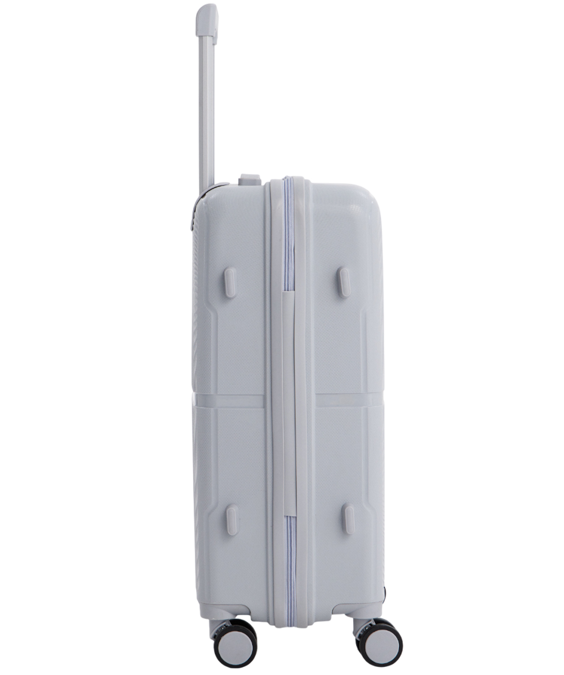 - — Чемодан выполнен из прочного полипропилена, который отличается легкостью и устойчивостью к механическим повреждениям.