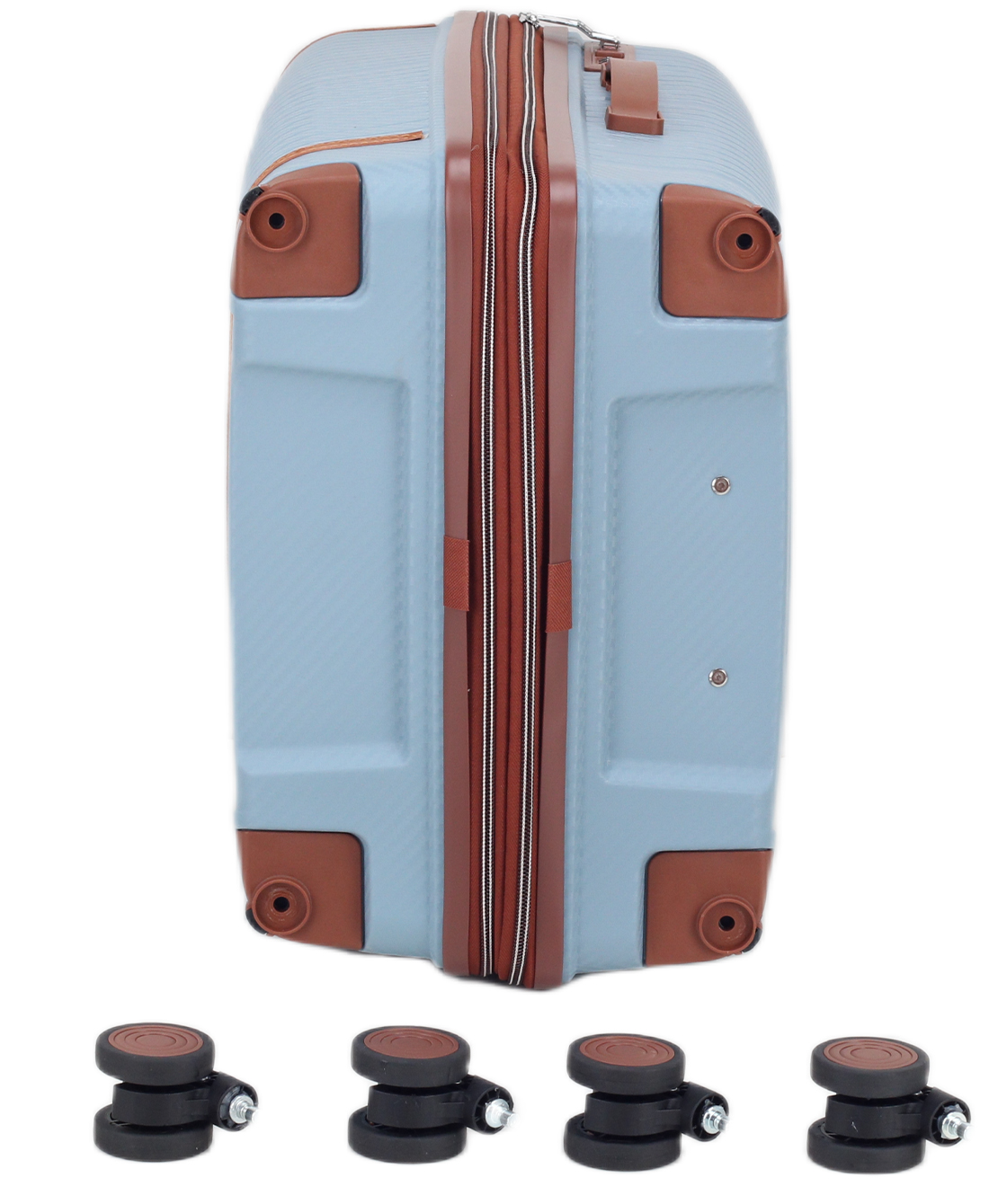 — Чемодан оснащён 4-мя спаренными колёсами на скользящих подшипниках, которые вращаются на 360 градусов.