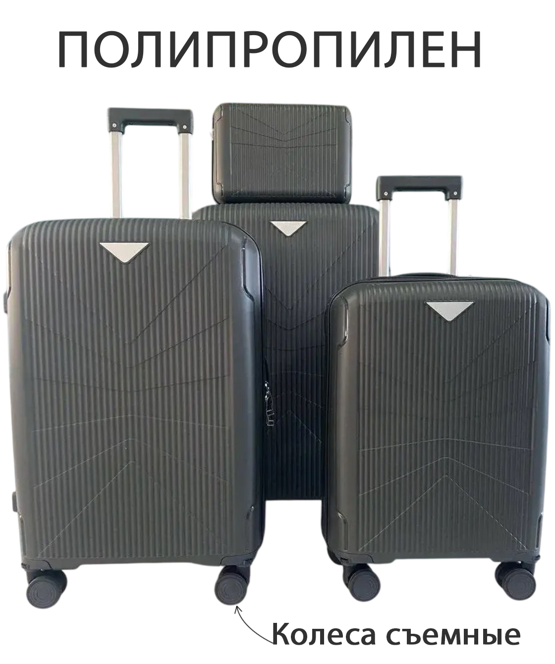 — Боковые ножки идут только на среднем и большом чемоданах.