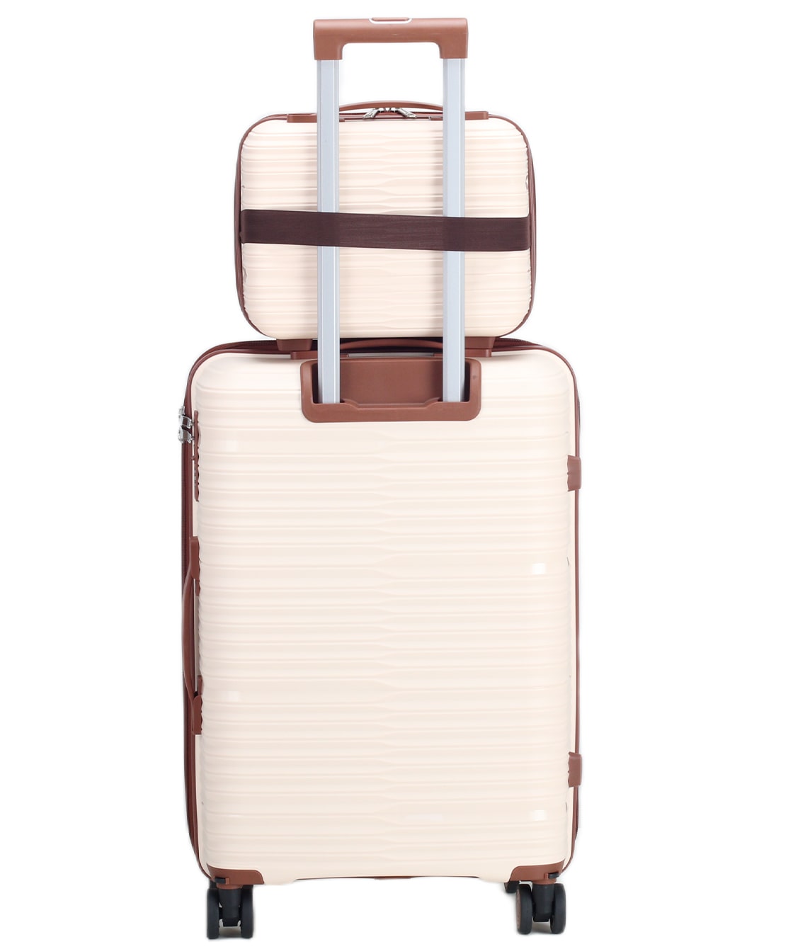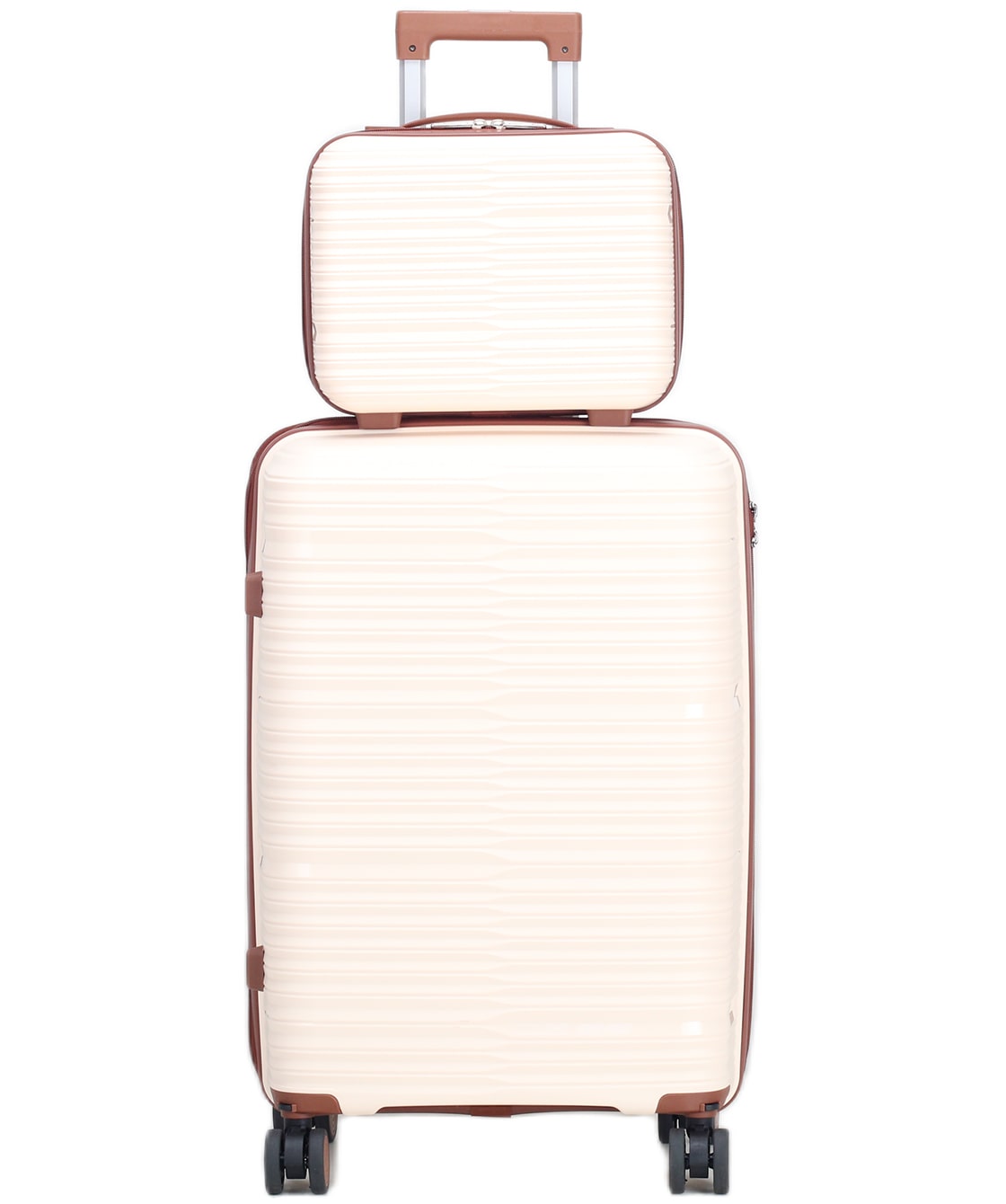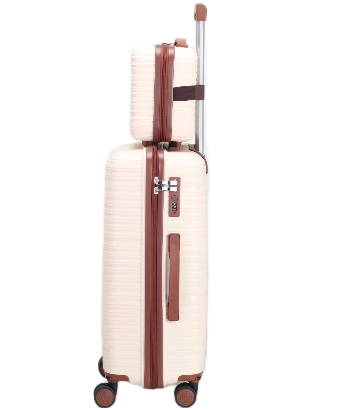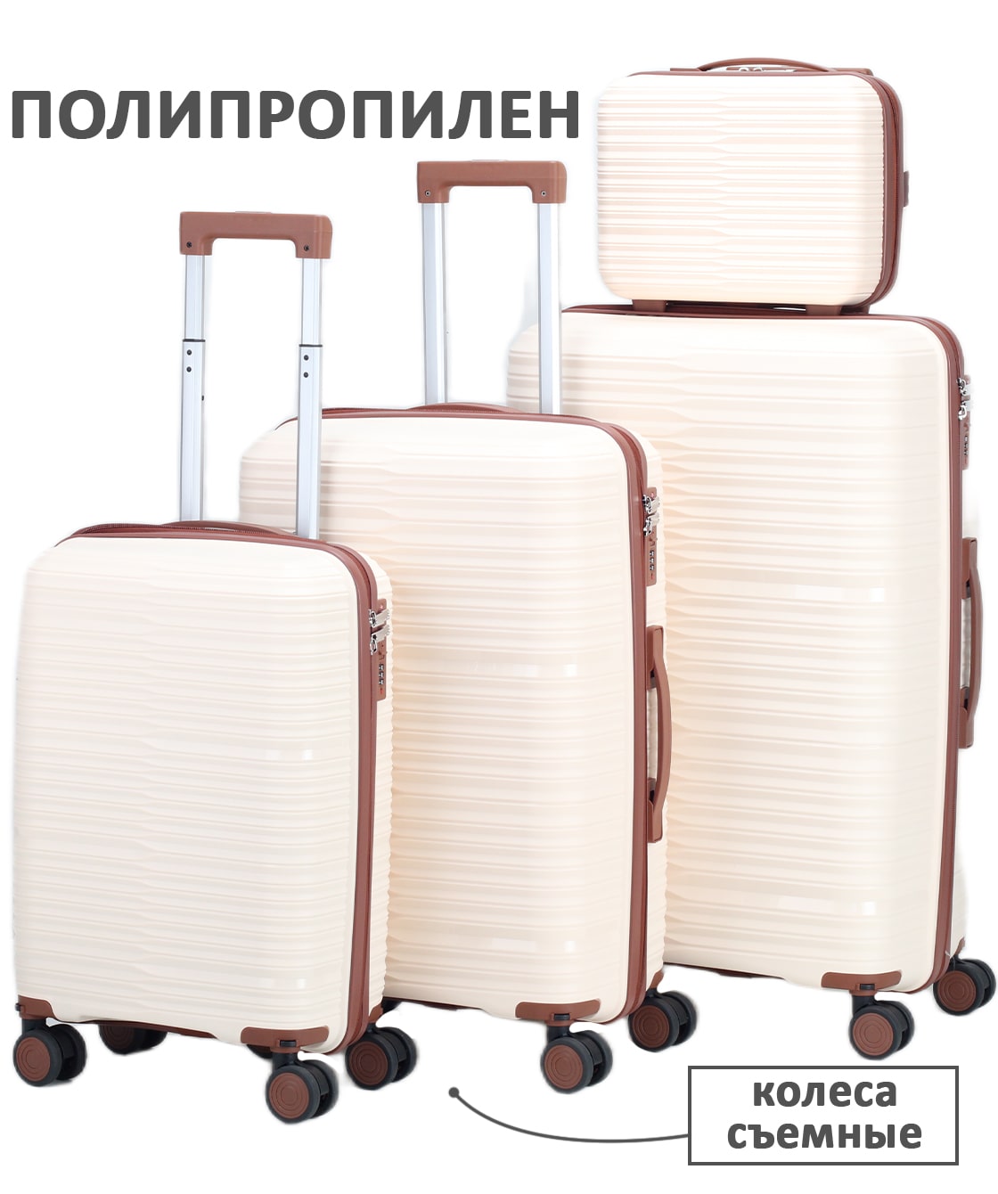 — На среднем и большом чемоданах есть боковые ручки для ношения и боковые ножки, на которые чемодан можно поставить.