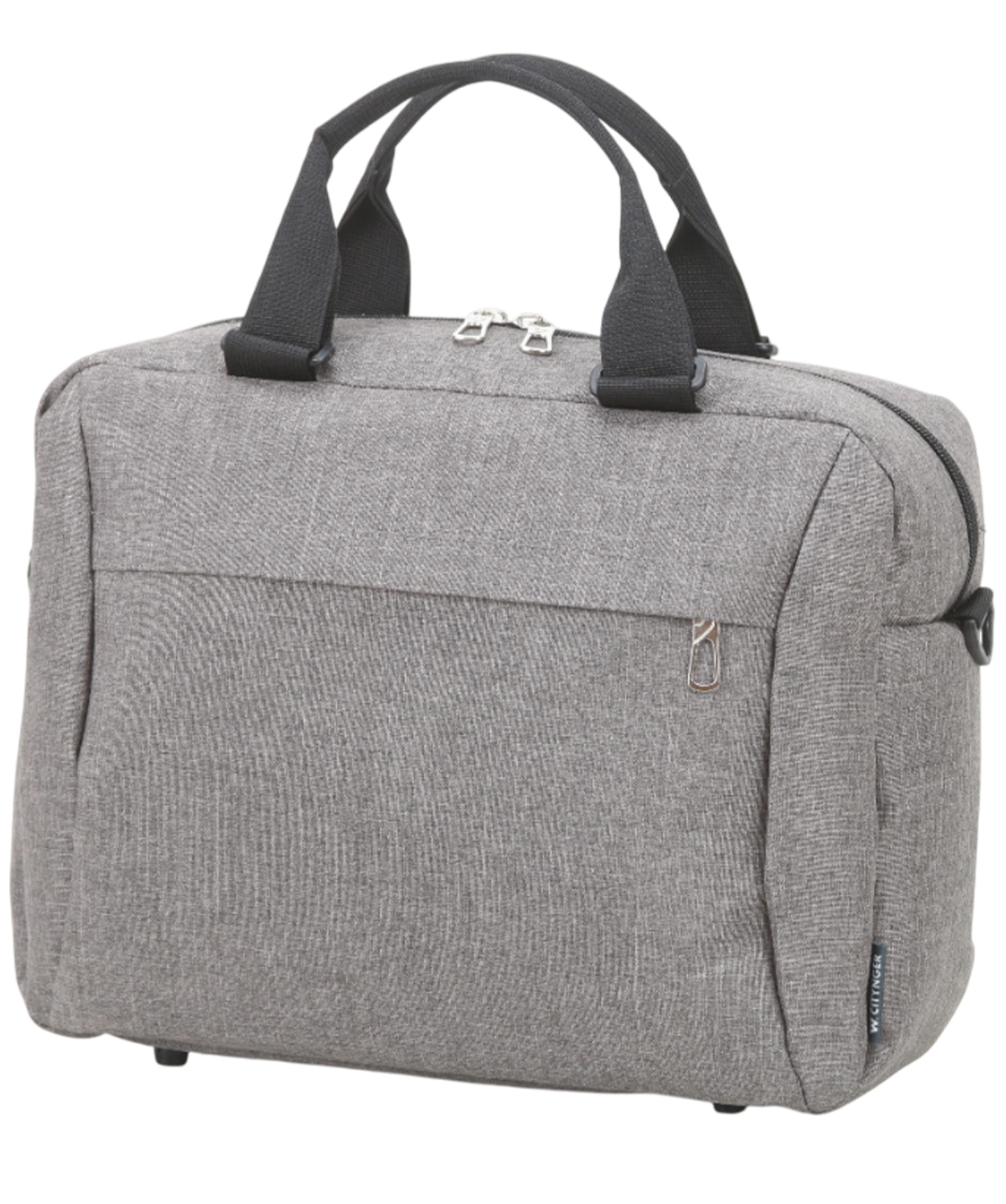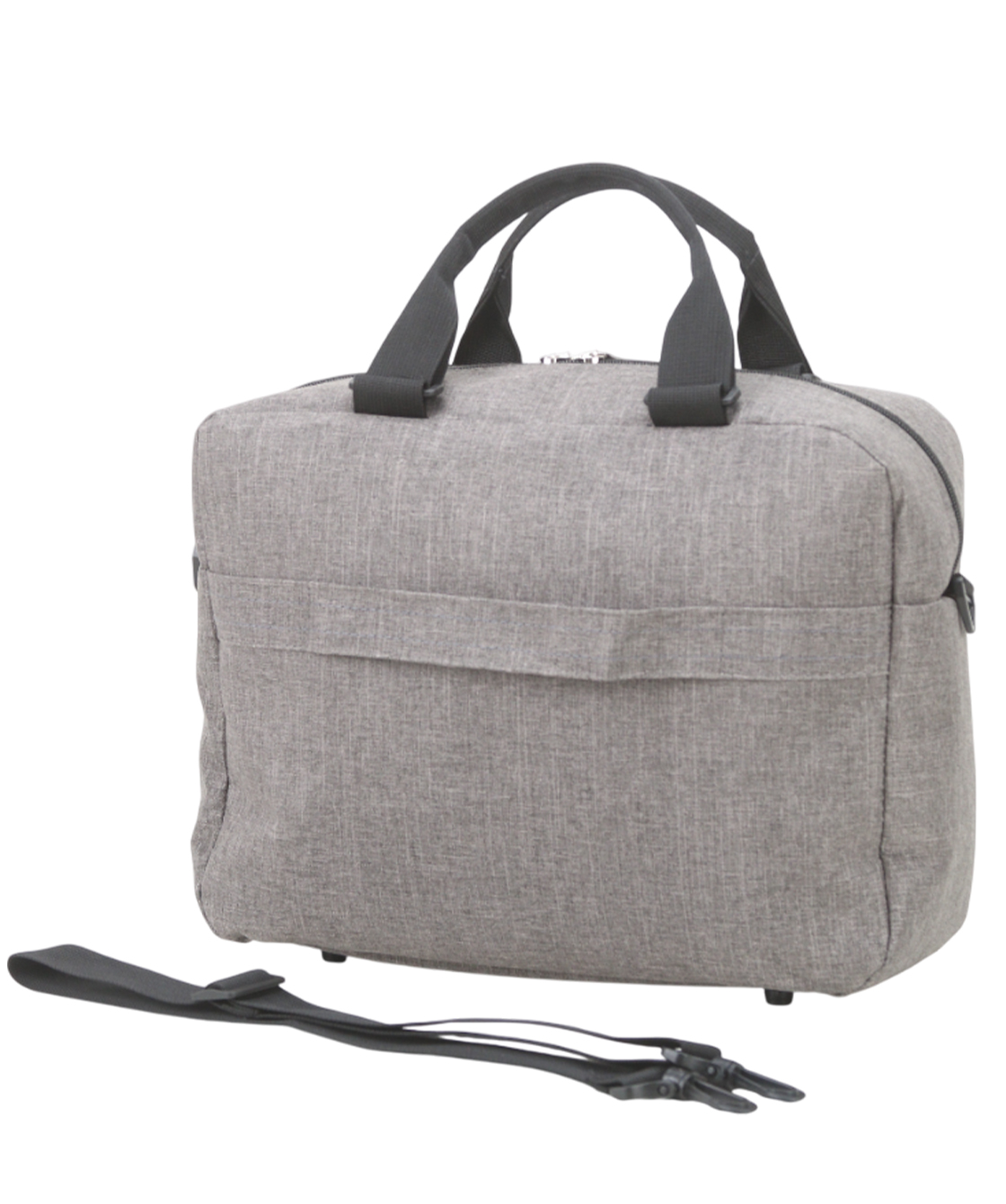 — Есть ручки для ношения и регулируемый ремень через плечо.