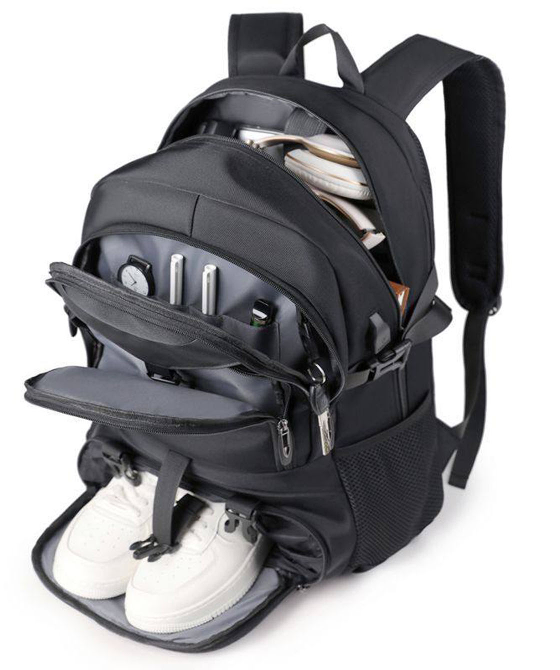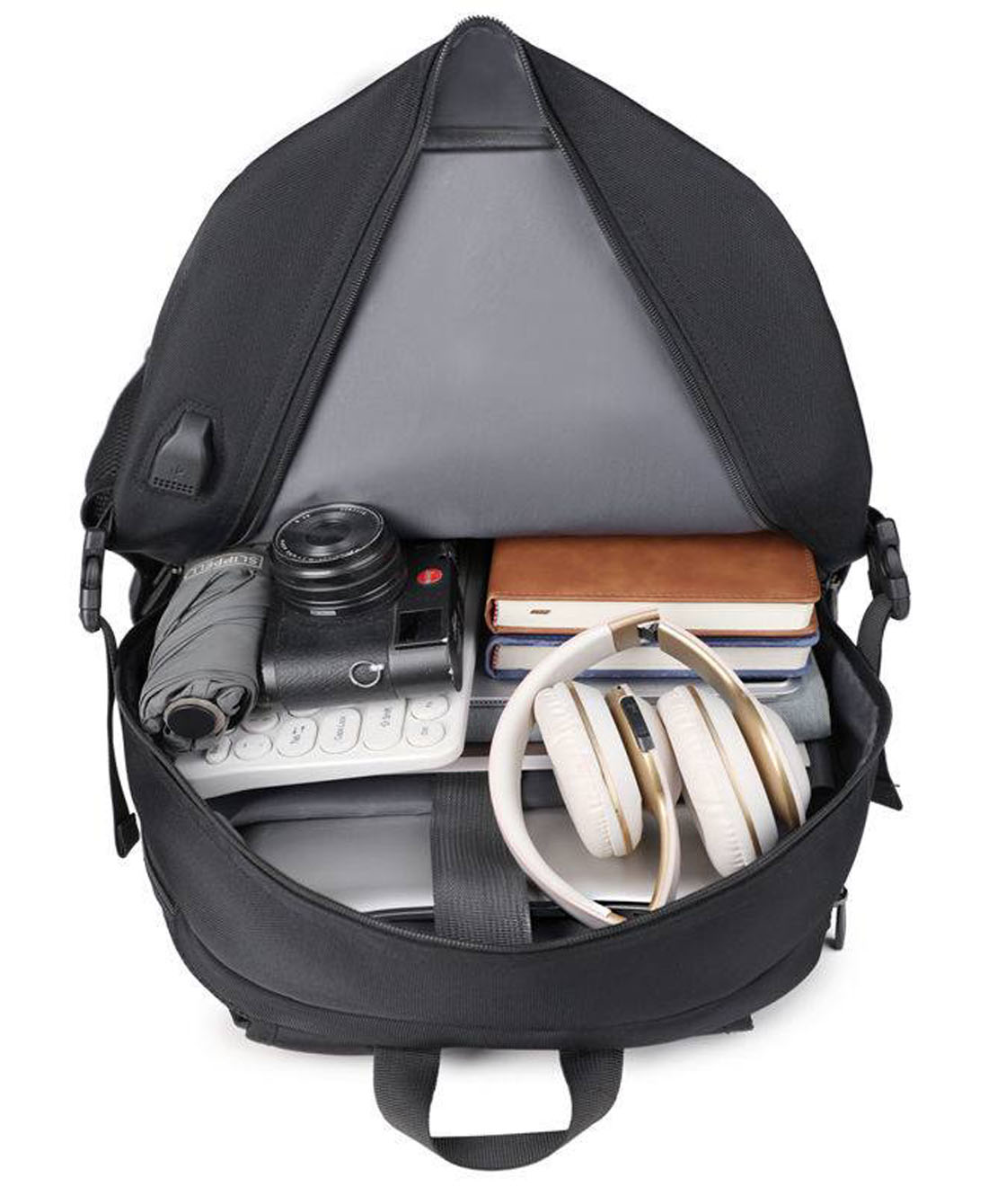 — Внутри рюкзака есть отдел для ноутбука, также есть дополнительные карманы.