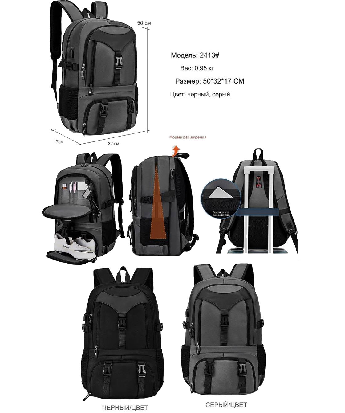— Рюкзак имеет передний дополнительный карман, который закрывается на молнию.