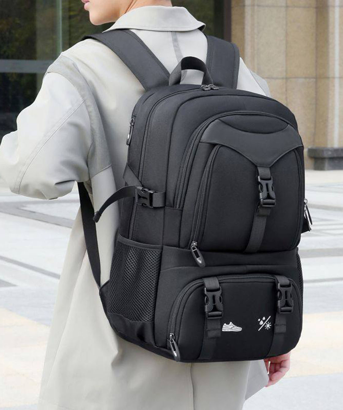 — Рюкзак изготовлен из высокопрочного морозоустойчивого и водонепроницаемого материала полиэстер.