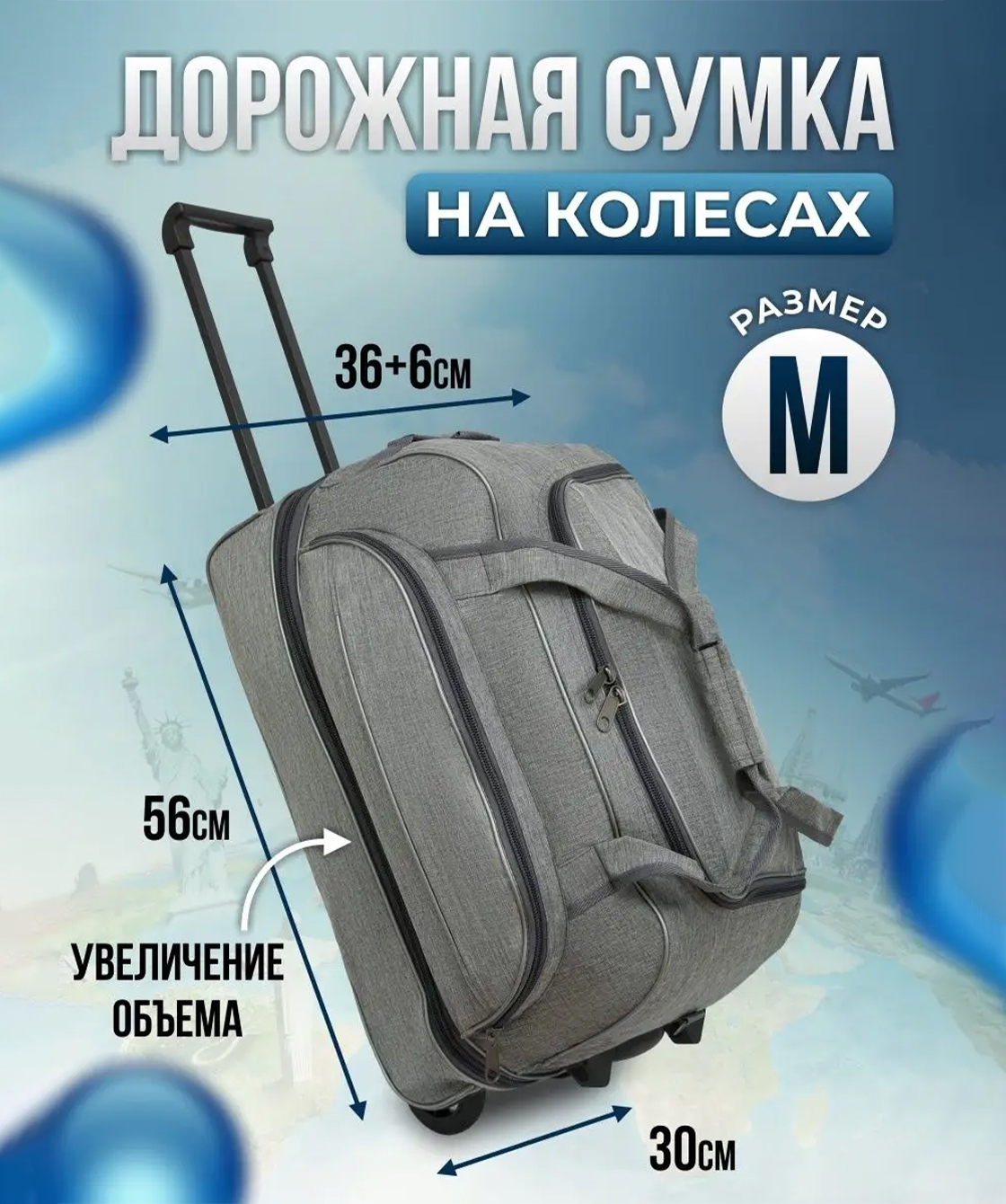 — Сумка оснащена двумя колесами на скользящих подшипниках.