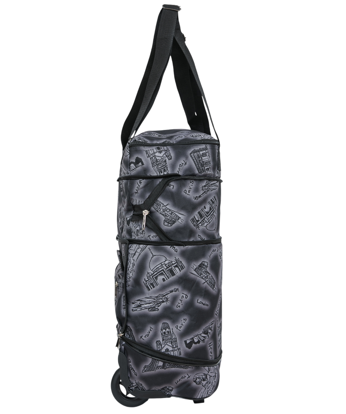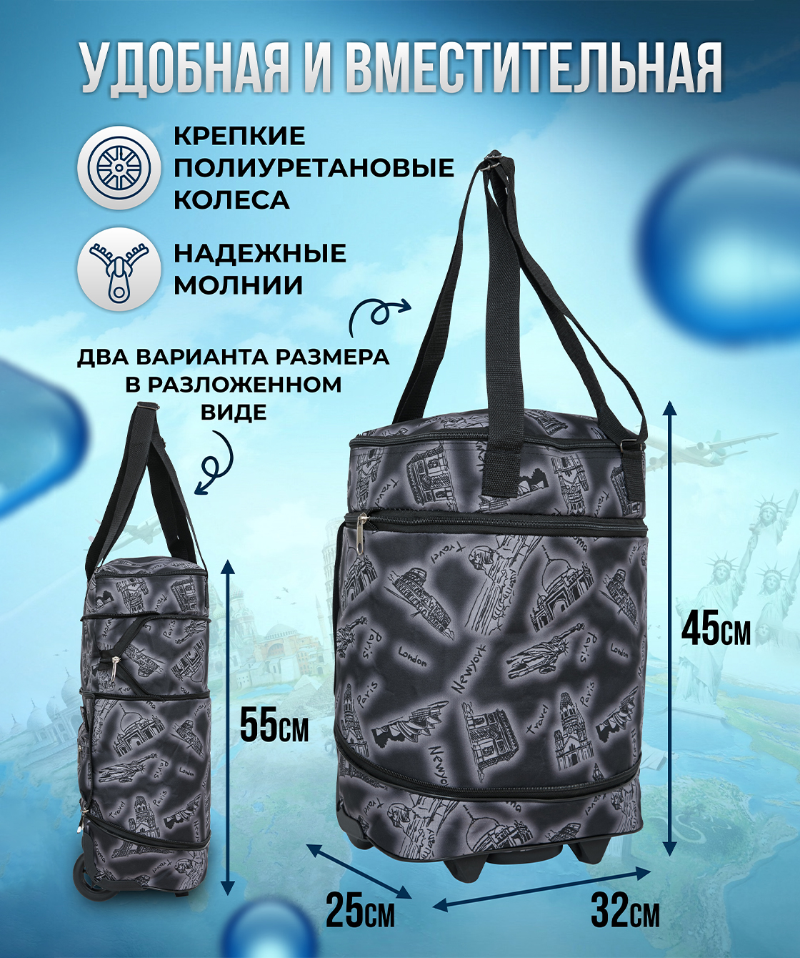— Сумка оснащена двумя полиуретановыми колесами на скользящих подшипниках, которые создают бесшумное скольжение.